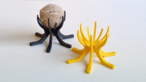 Vogel voerballen in van die plastic netjes kunnen natuurlijk niet. Daarom deze 3D geprinte standaard die het voer op schone wijze presenteert aan de vogels. Wil je dit zelf printen? Kijk dan op mijn Printables.com pagina.
